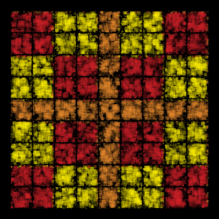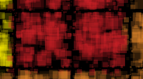 Color textures are created by overlapping squares of various sizes and transparencies.
