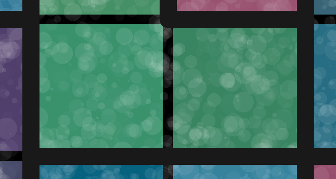 Color textures are created by layering overlapping circles of various sizes and transparencies on top of squares which are solid in color.