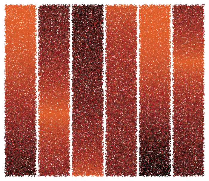 The following texture is created using thousands of circles, each a slightly different random size and color. Different color gradients are used for each panel.